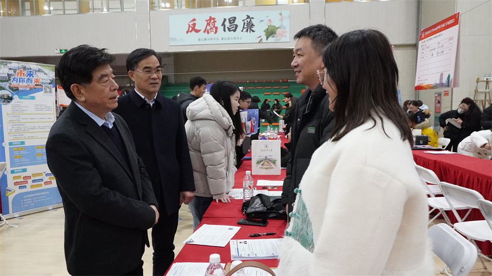 为抢抓研究生考试后的求职关键期,12月23日下午,学校在文体馆举办2026届毕业生研后专场招聘会。校党委副书记田义轲与各学院党政领导、专业负责人、就业辅导员来到招聘现场,深入了解用人单位需求和行业发展趋势,并向企业推介优秀毕业生。