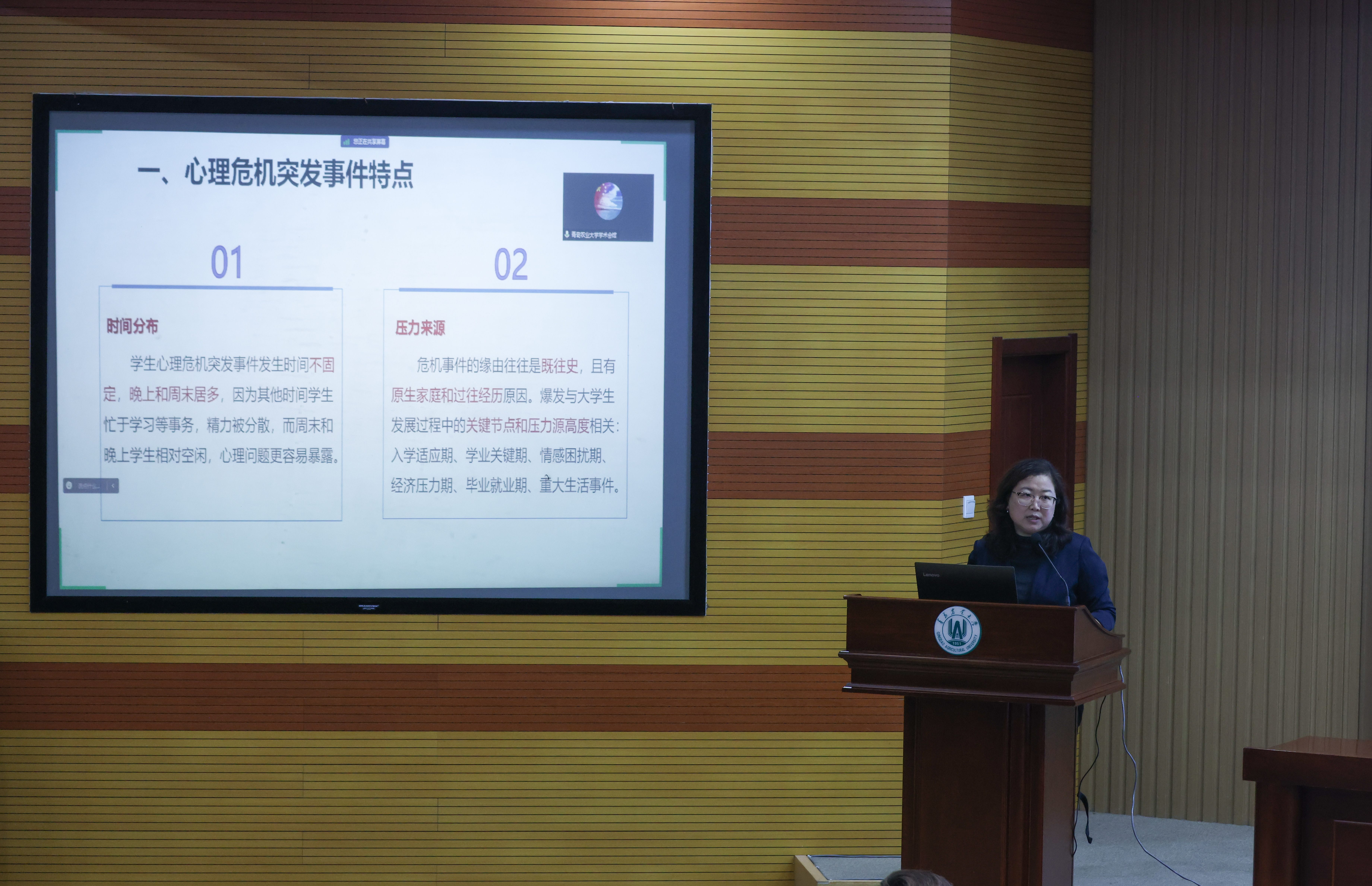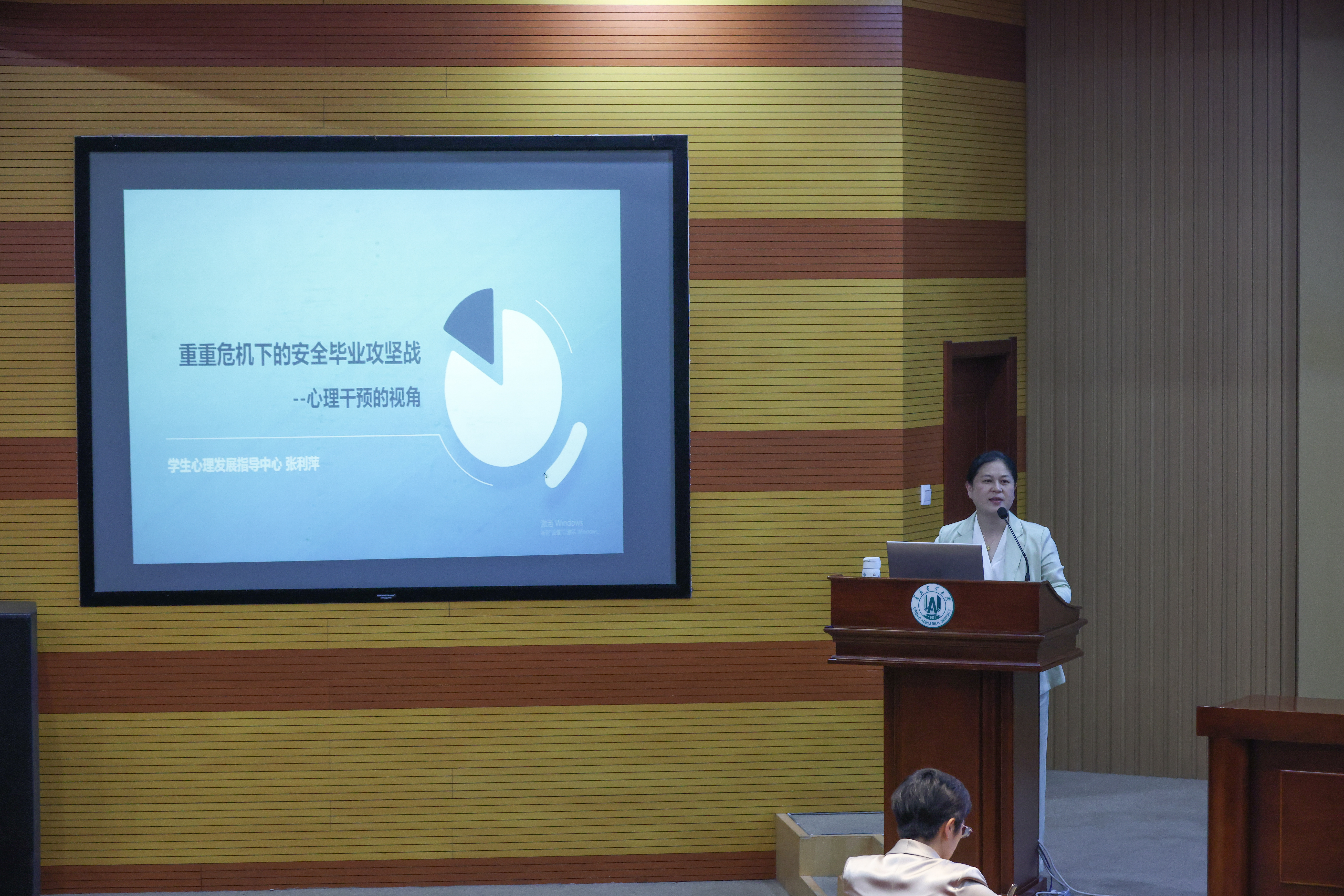 张利萍以《重重危机下的安全毕业攻坚战——心理干预的视角》为主题,从“危机识别—初步介入—方案落地—处理过程—事后反馈”五个关键环节,详细分享了一例毕业生心理危机干预的完整案例。她讲到,辅导员的每一次细心关注、每一次耐心沟通,都是践行“立德树人”初心、守护学生健康成长的重要实践,唯有不断打磨育人本领,才能为学生健康成才筑牢心理防线。