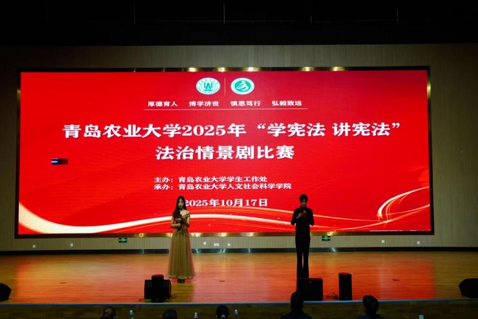 为深入学习宣传习近平法治思想,增强我校学生的宪法意识与法治素养,引导师生自觉尊法学法守法用法,坚定法治信仰、弘扬法治精神,10月17日,由青岛农业大学学生工作处主办、人文社会科学学院承办的青岛农业大学2025年“学宪法 讲宪法”法治情景剧比赛在平度校区大学生创业中心报告厅举办。自活动启动以来全校学生热情高涨,积极响应,经各学院初赛选拔,最终共19支代表队晋级本次比赛。
