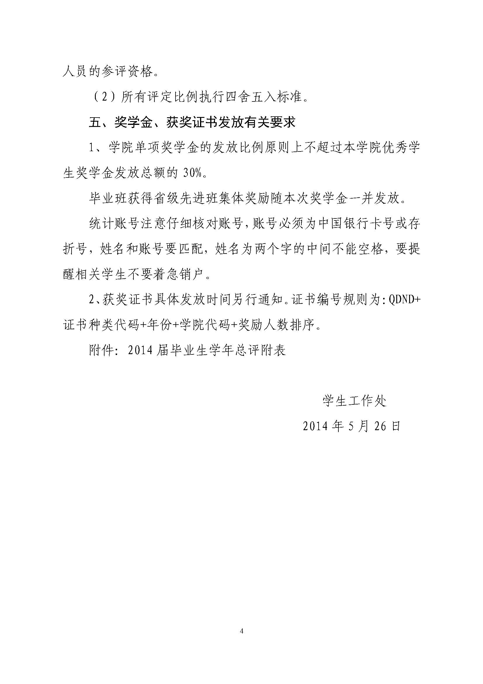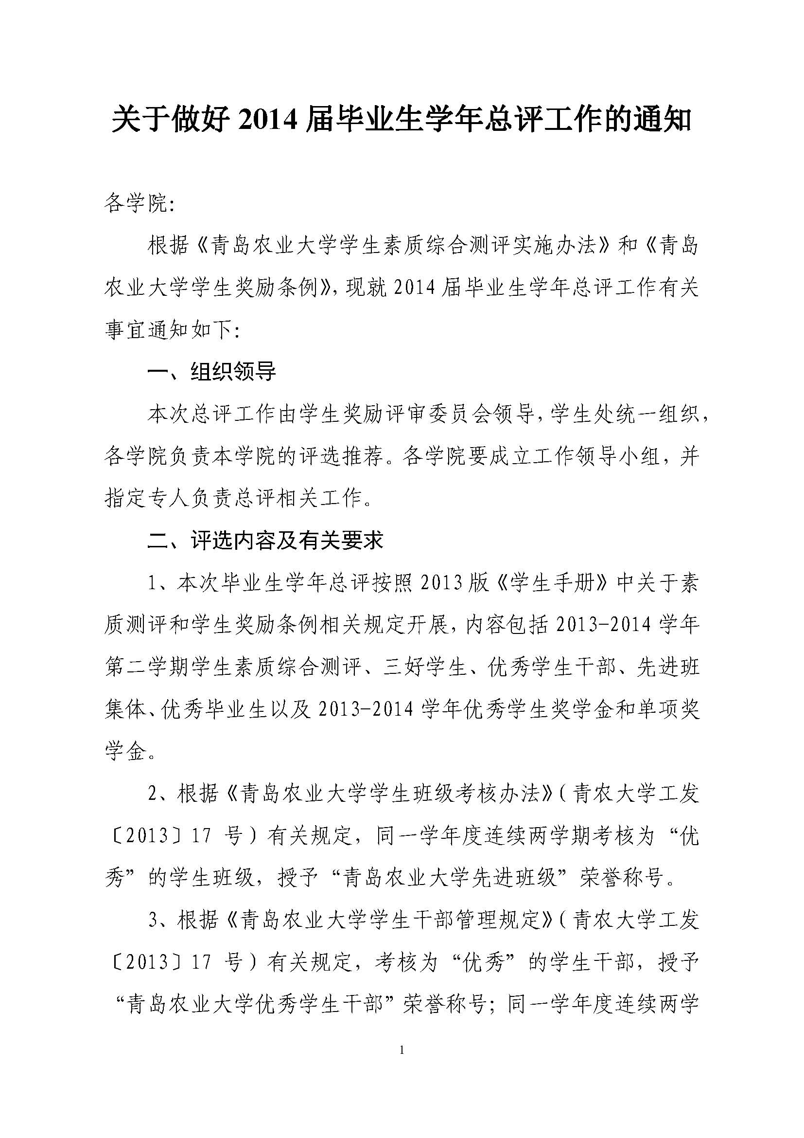 关于做好2014届毕业生学年总评工作的通知