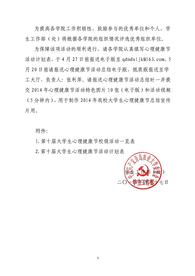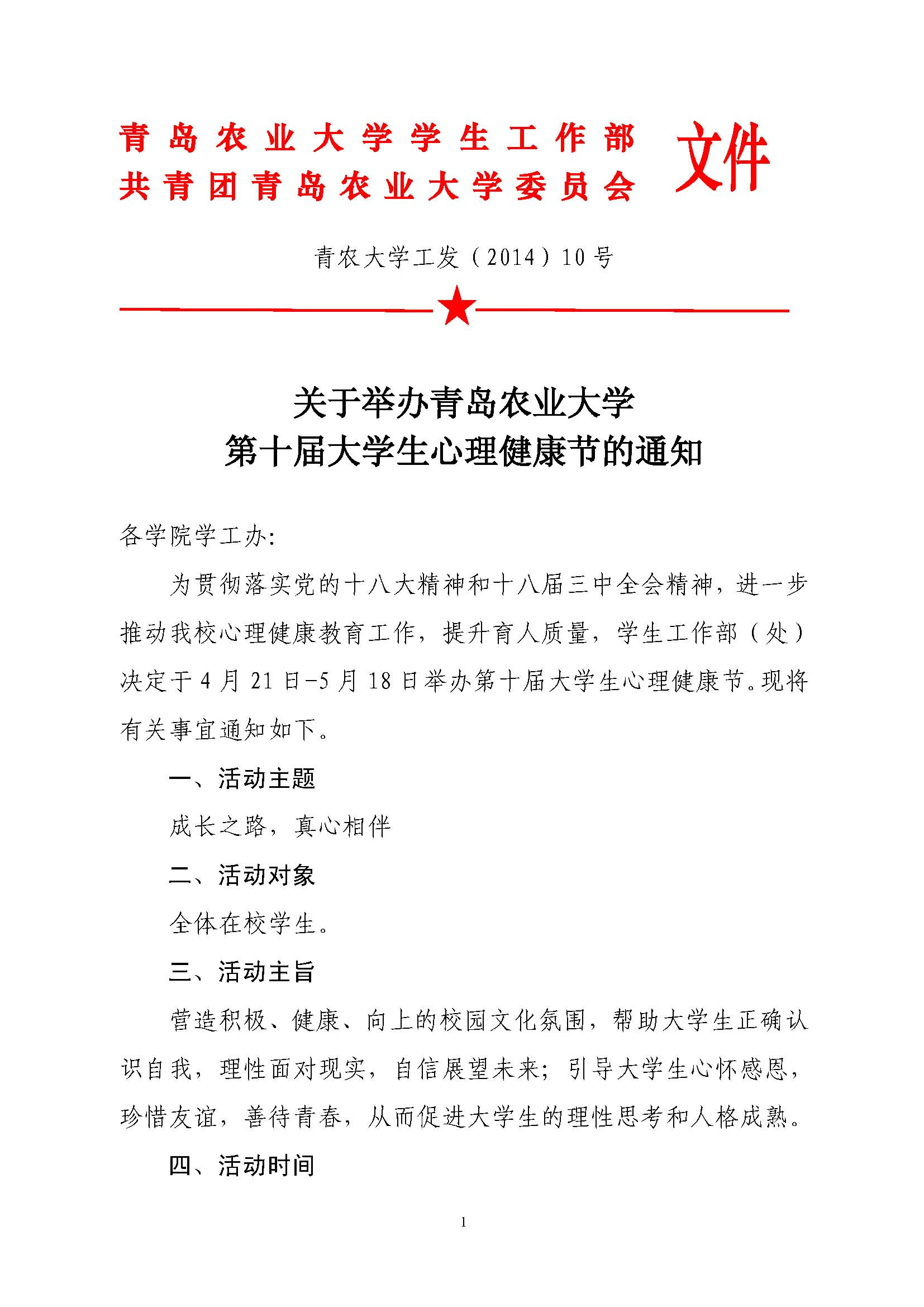关于举办青岛农业大学第十届大学生心理健康节的通知