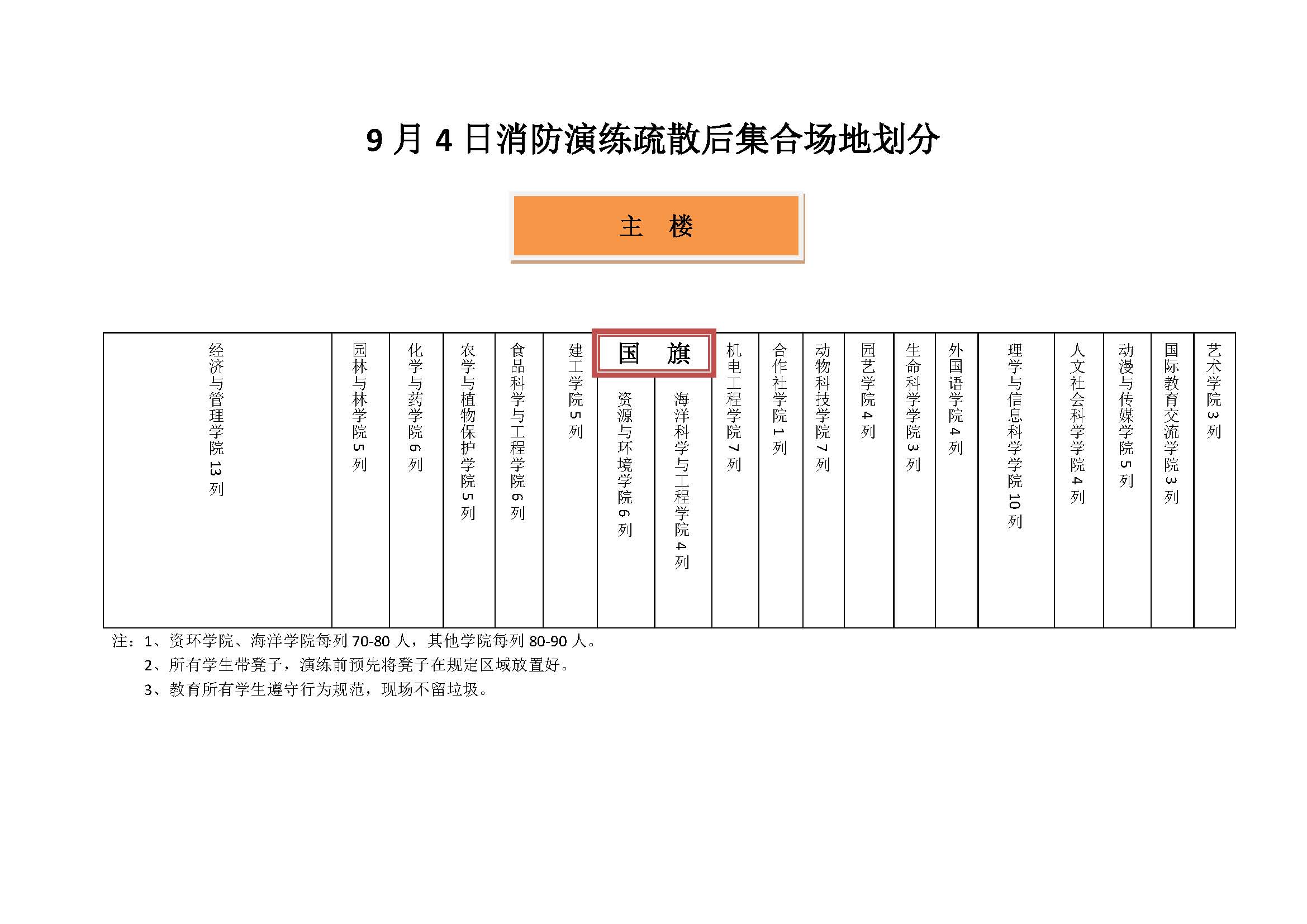 9月4日消防演练疏散后集合场地划分