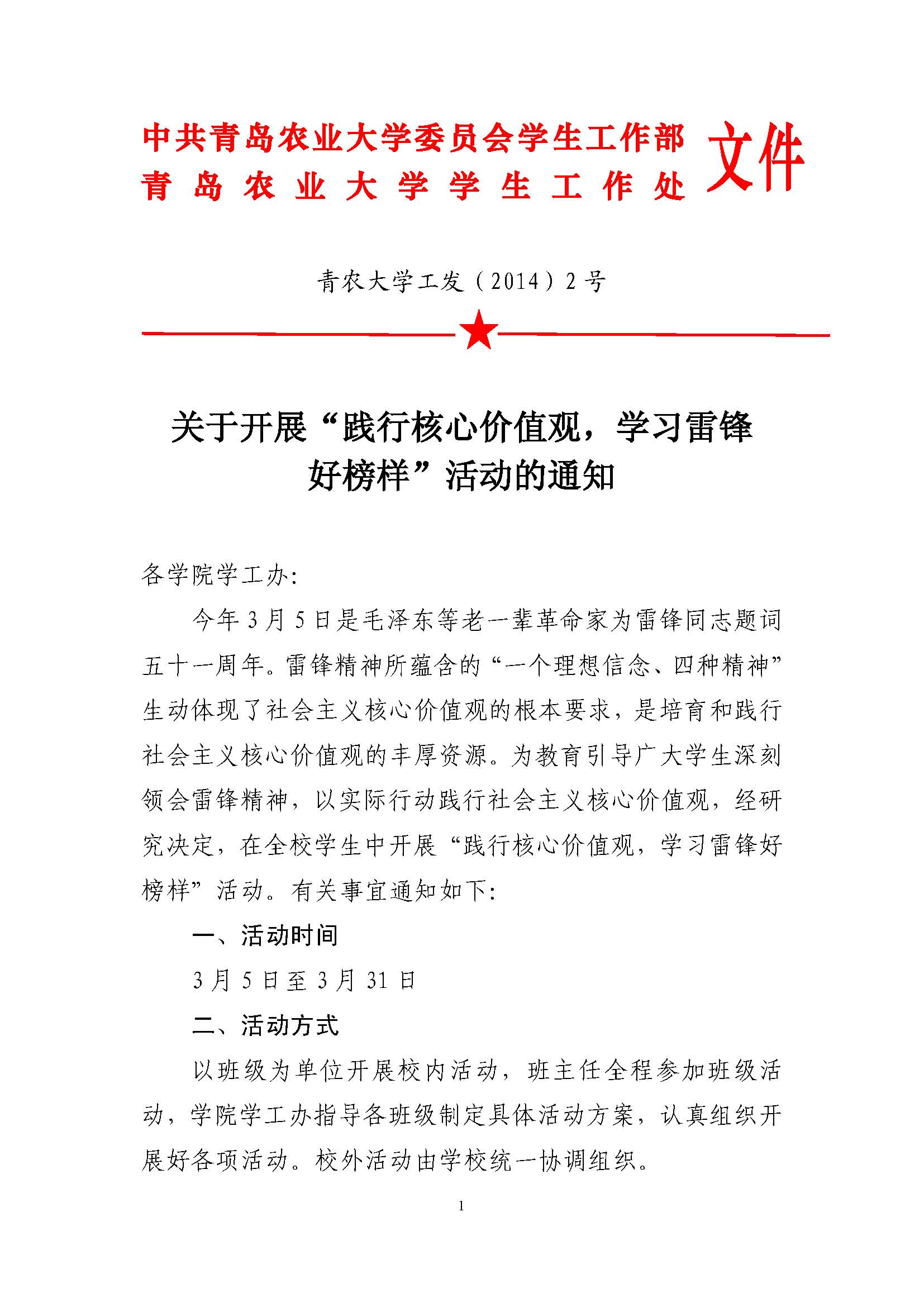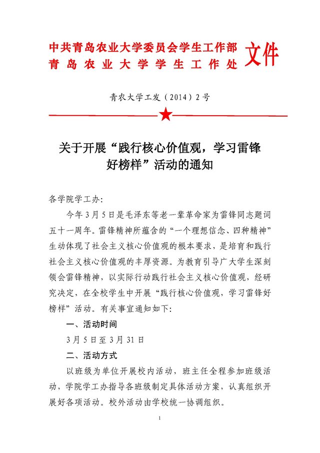关于开展“践行核心价值观,学习雷锋好榜样”活动的通知