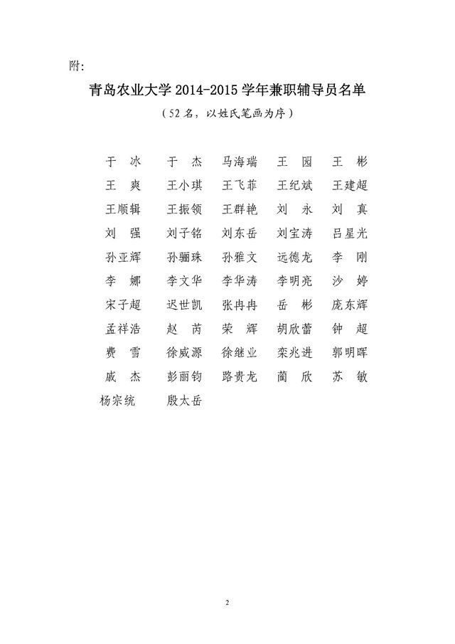 关于聘用于冰等为青岛农业大学2014-2015学年兼职辅导员的决定