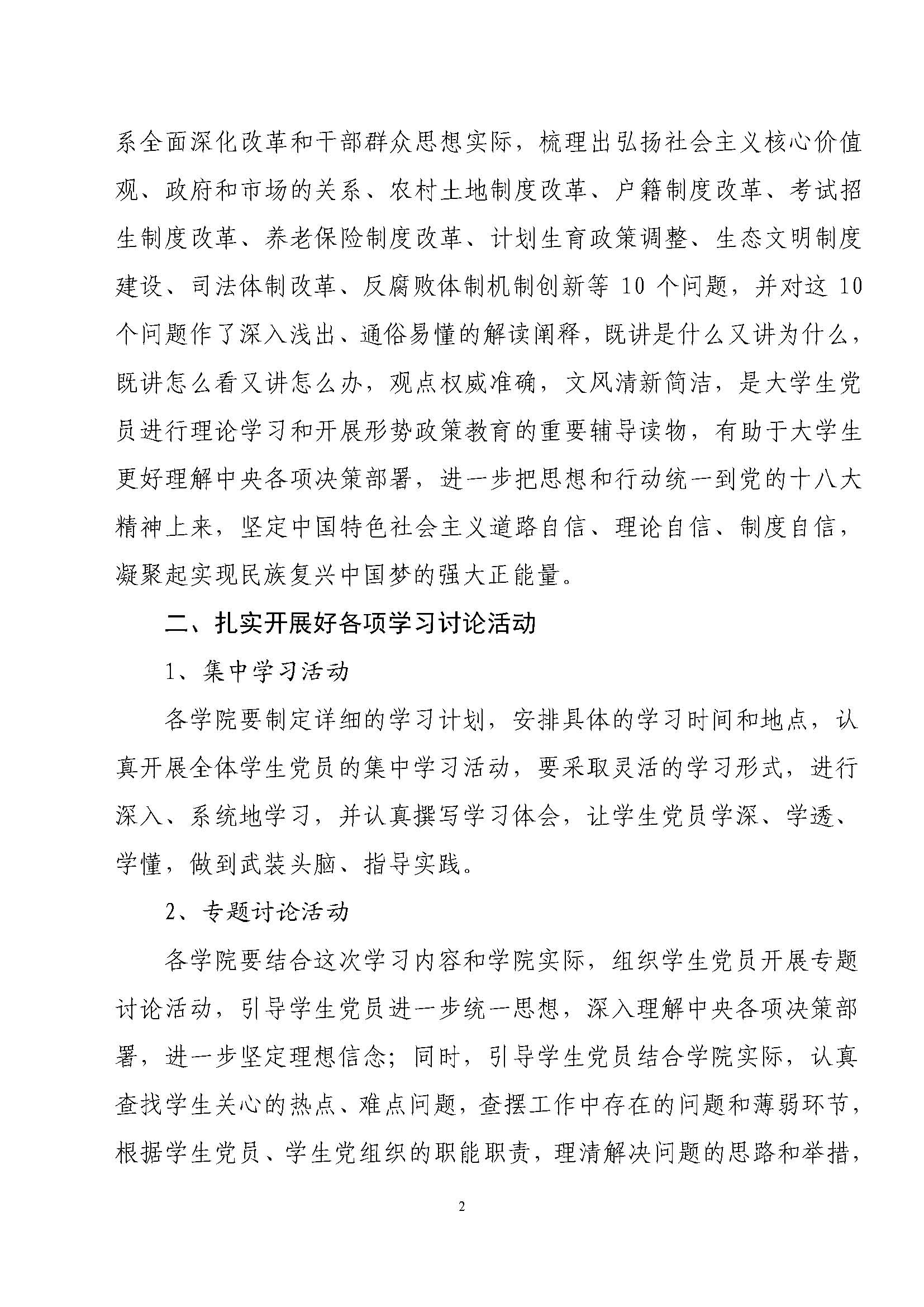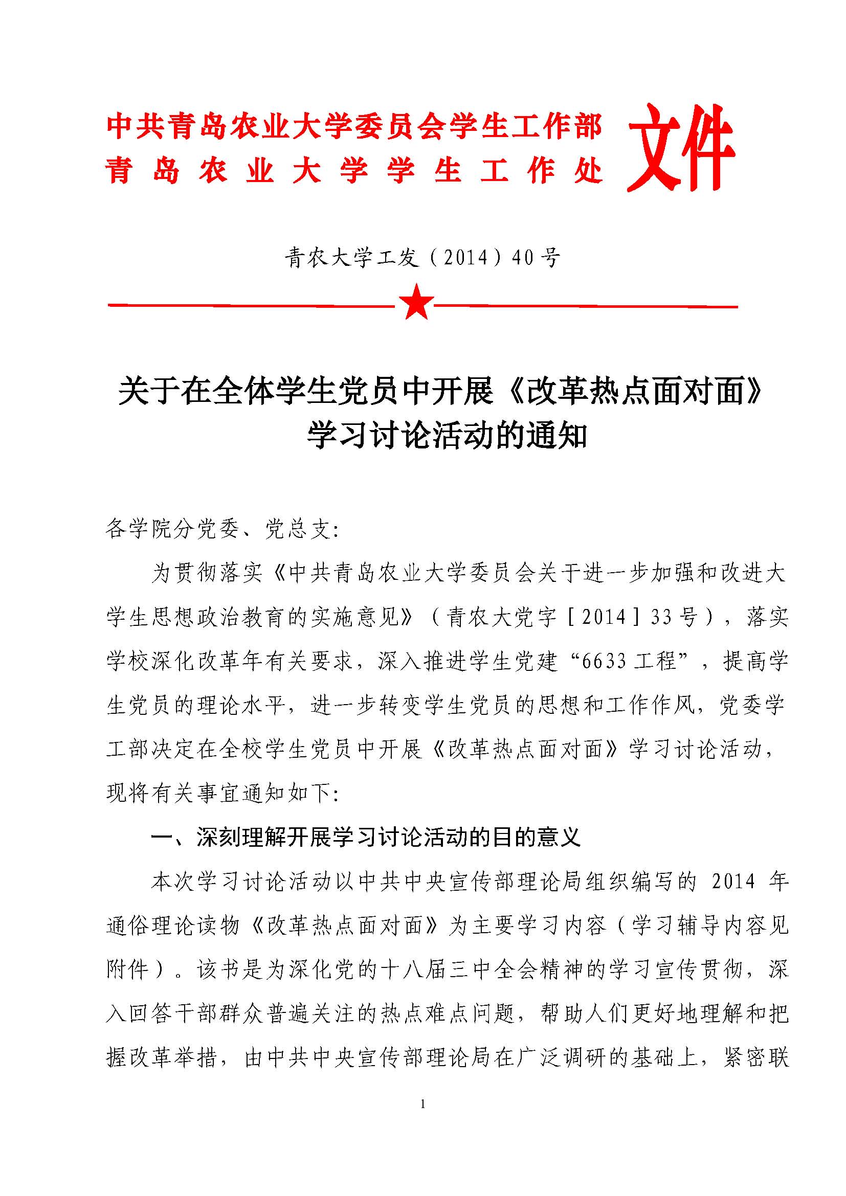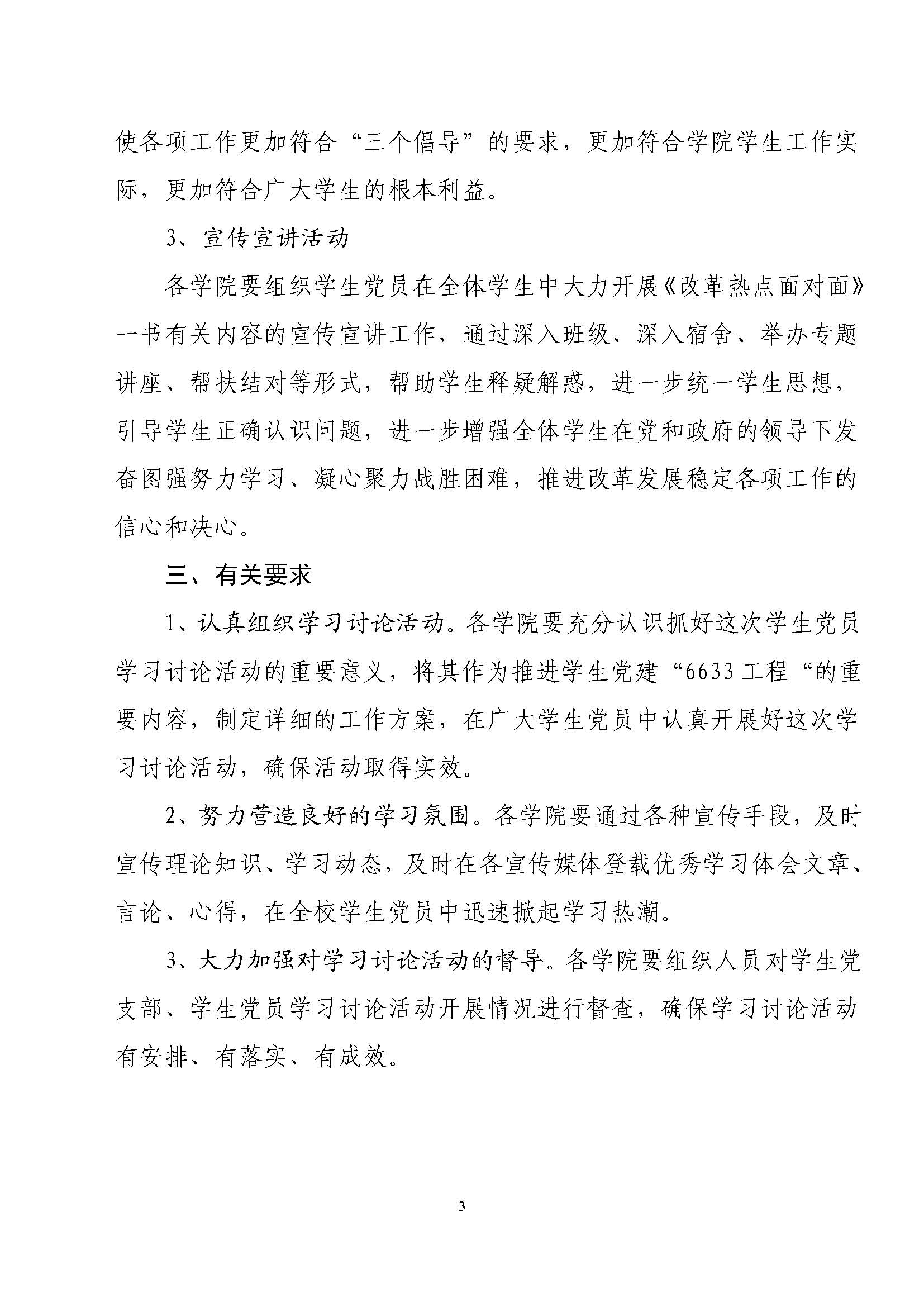 关于在全体学生党员中开展《改革热点面对面》学习讨论活动的通知