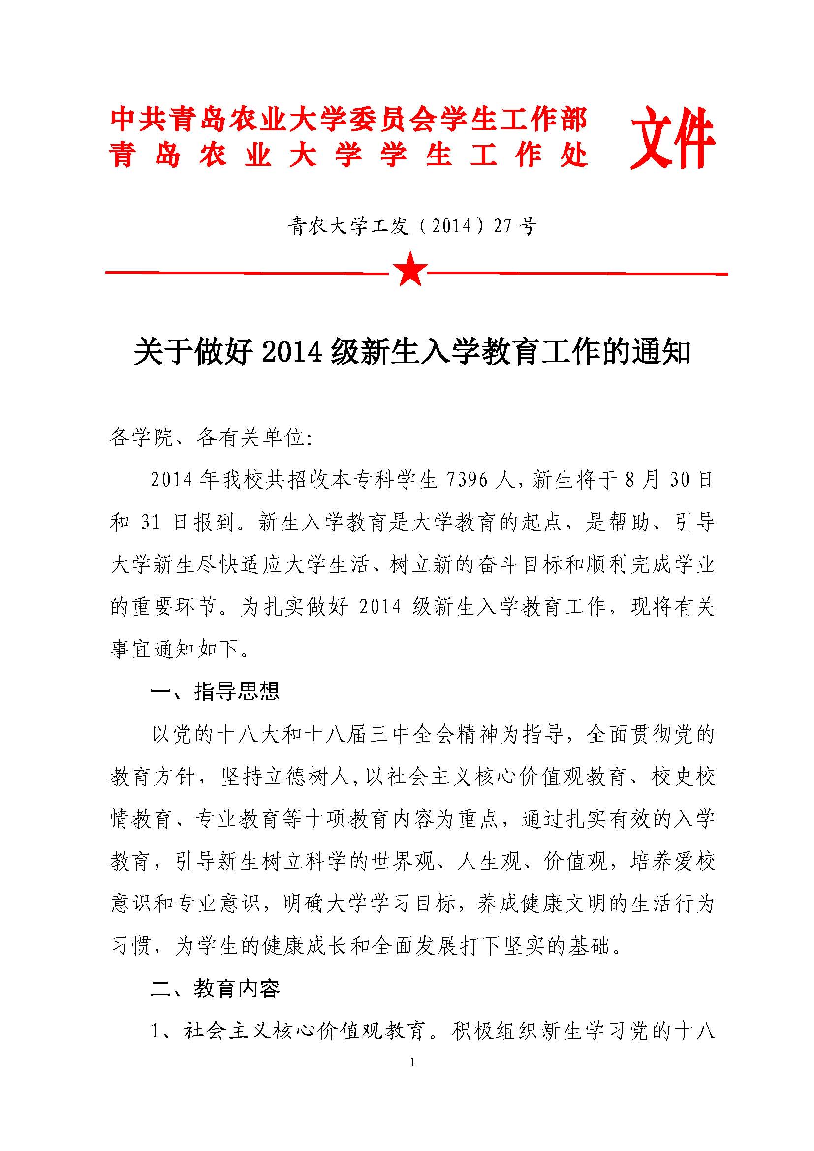 关于做好2014级新生入学教育工作的通知DOC格式下载