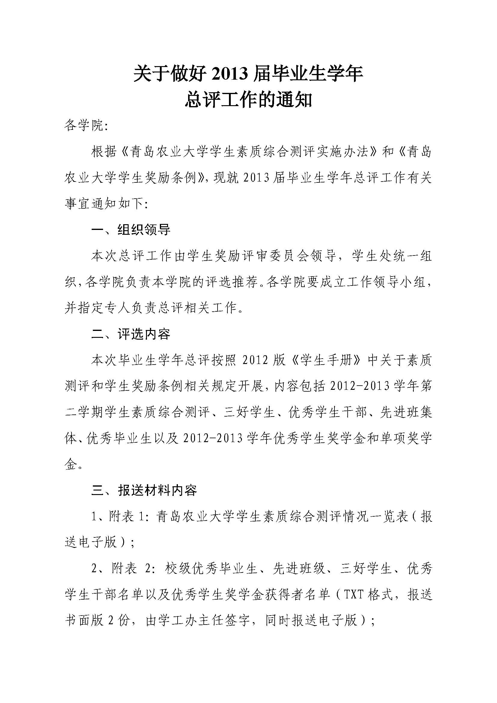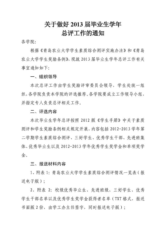 关于做好2013届毕业生学年总评工作的通知