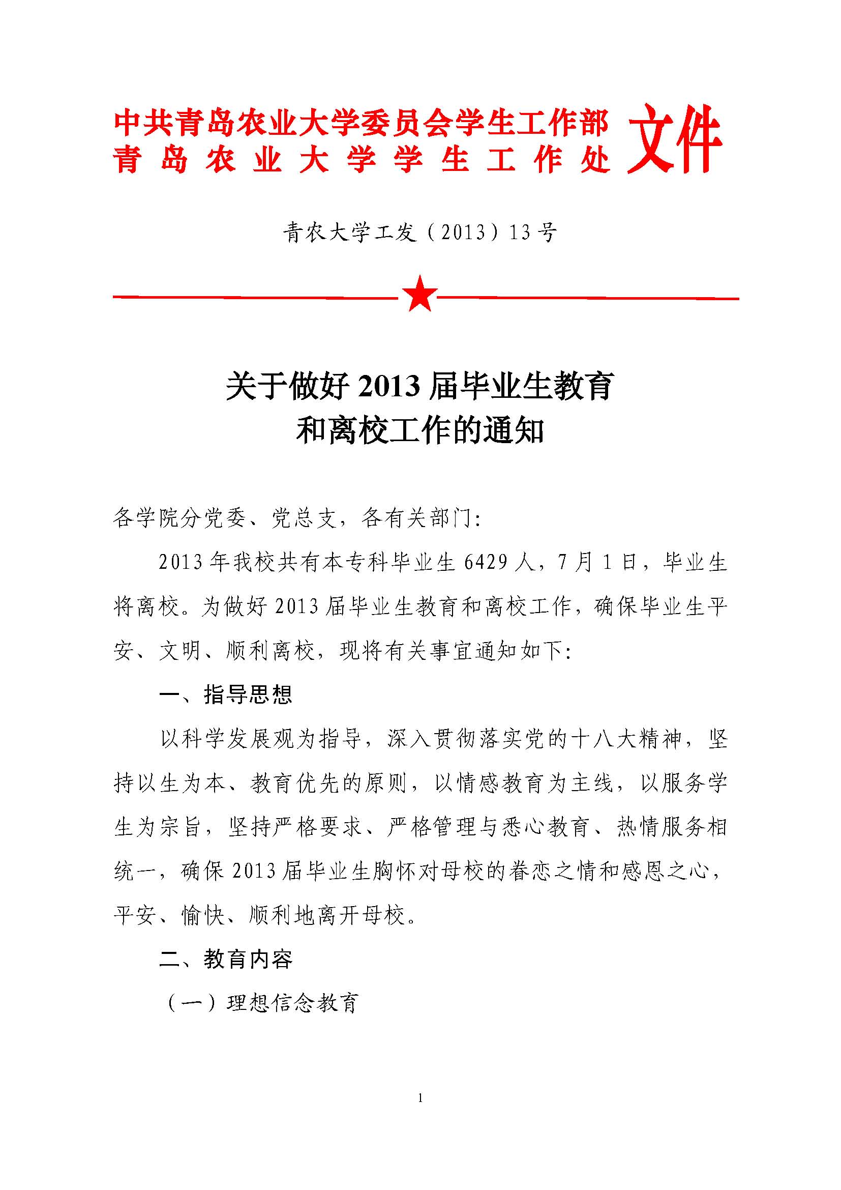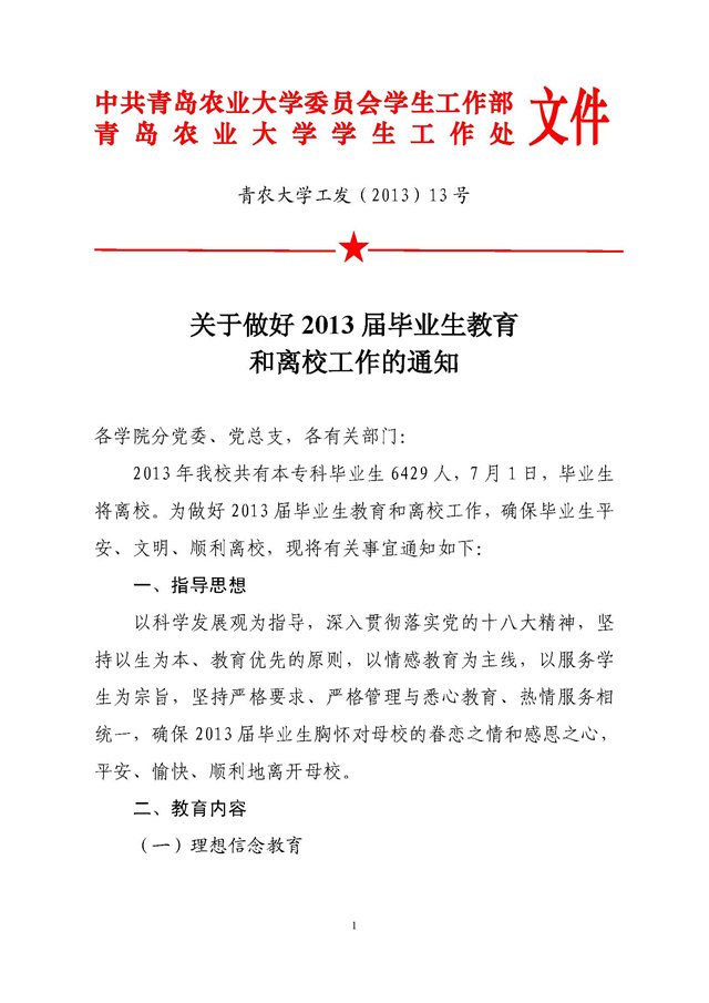 关于做好2013届毕业生教育和离校工作的通知