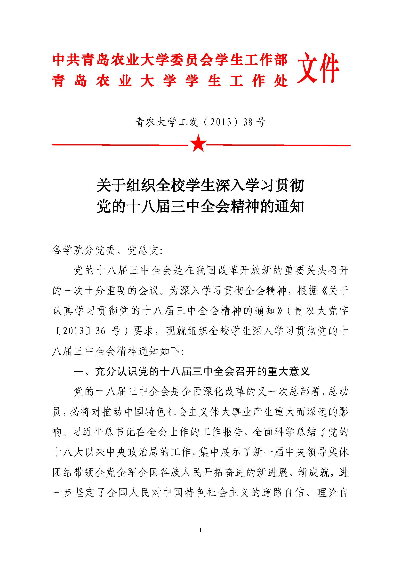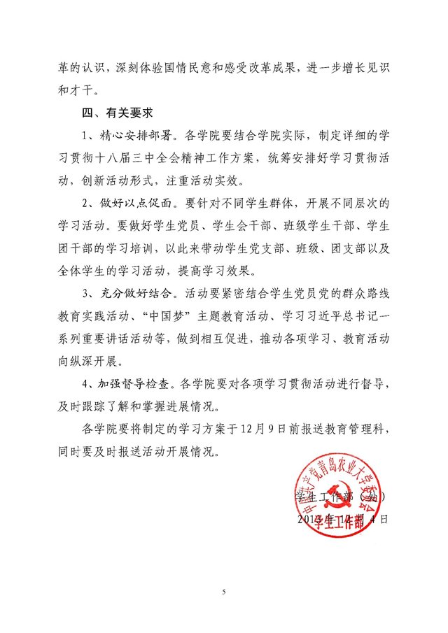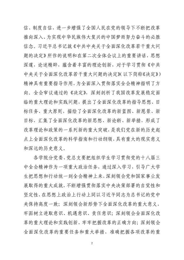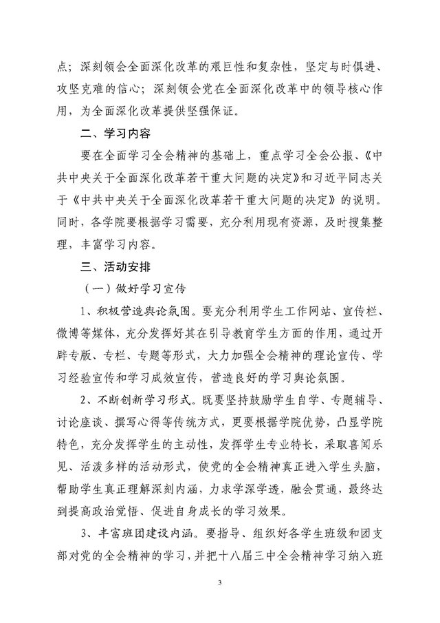 关于组织全校学生深入学习贯彻党的十八届三中全会精神的通知