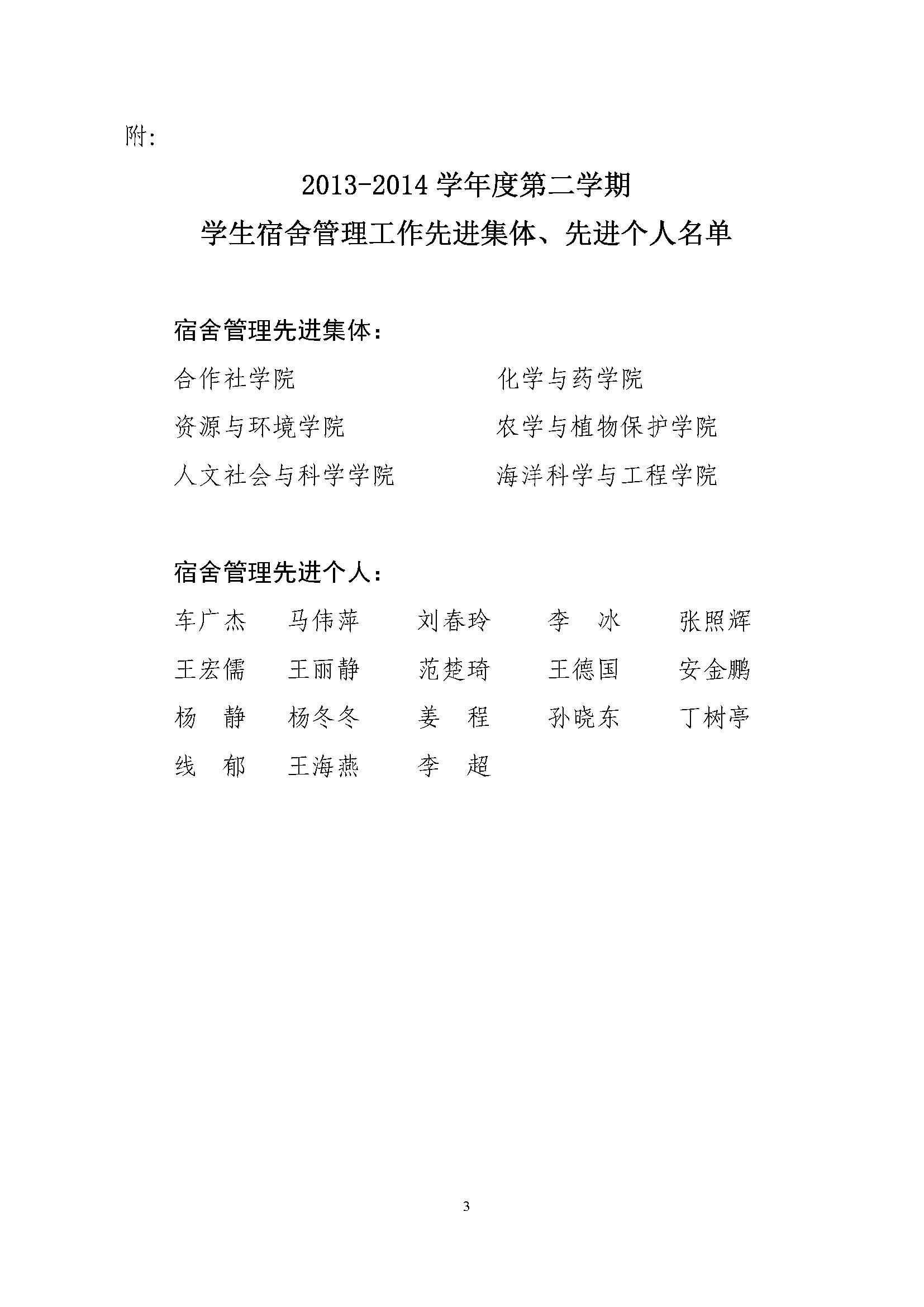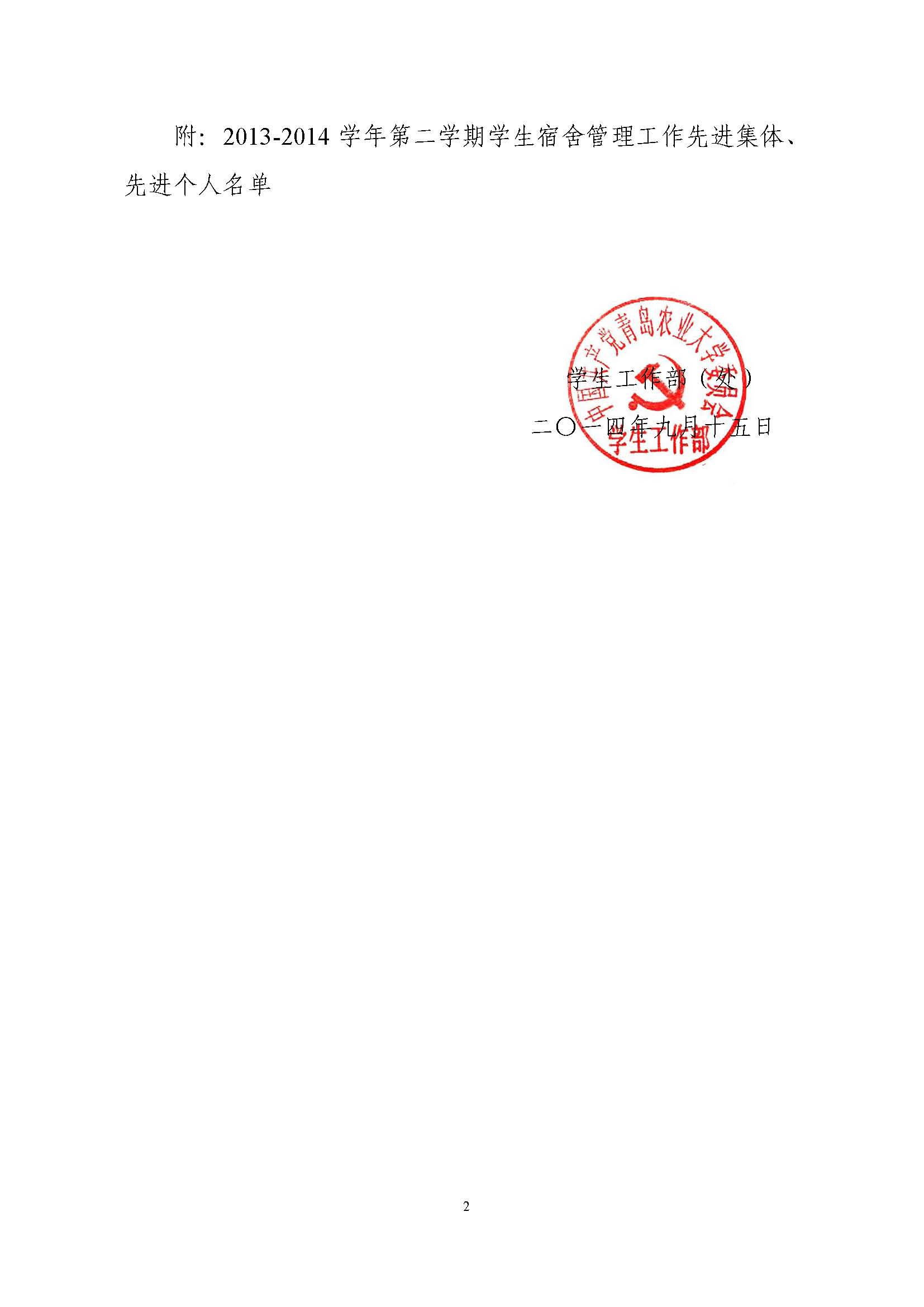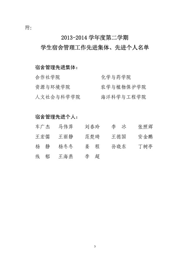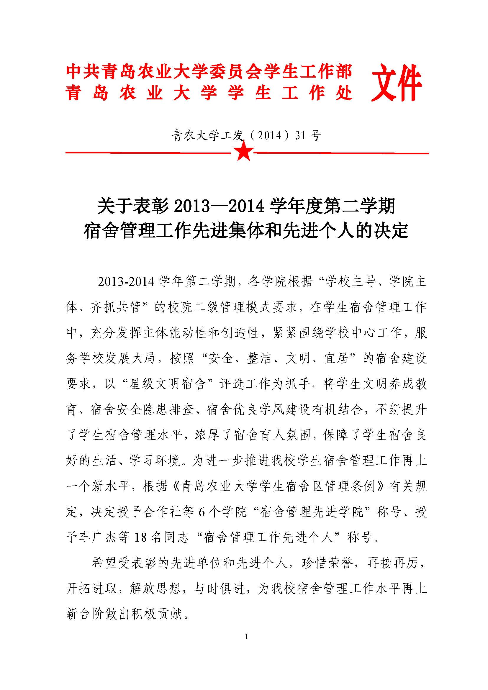 关于表彰2013-2014学年度第二学期宿舍管理工作先进集体和先进个人的决定