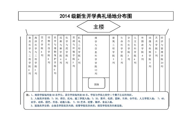 2014年开学典礼场地安排图