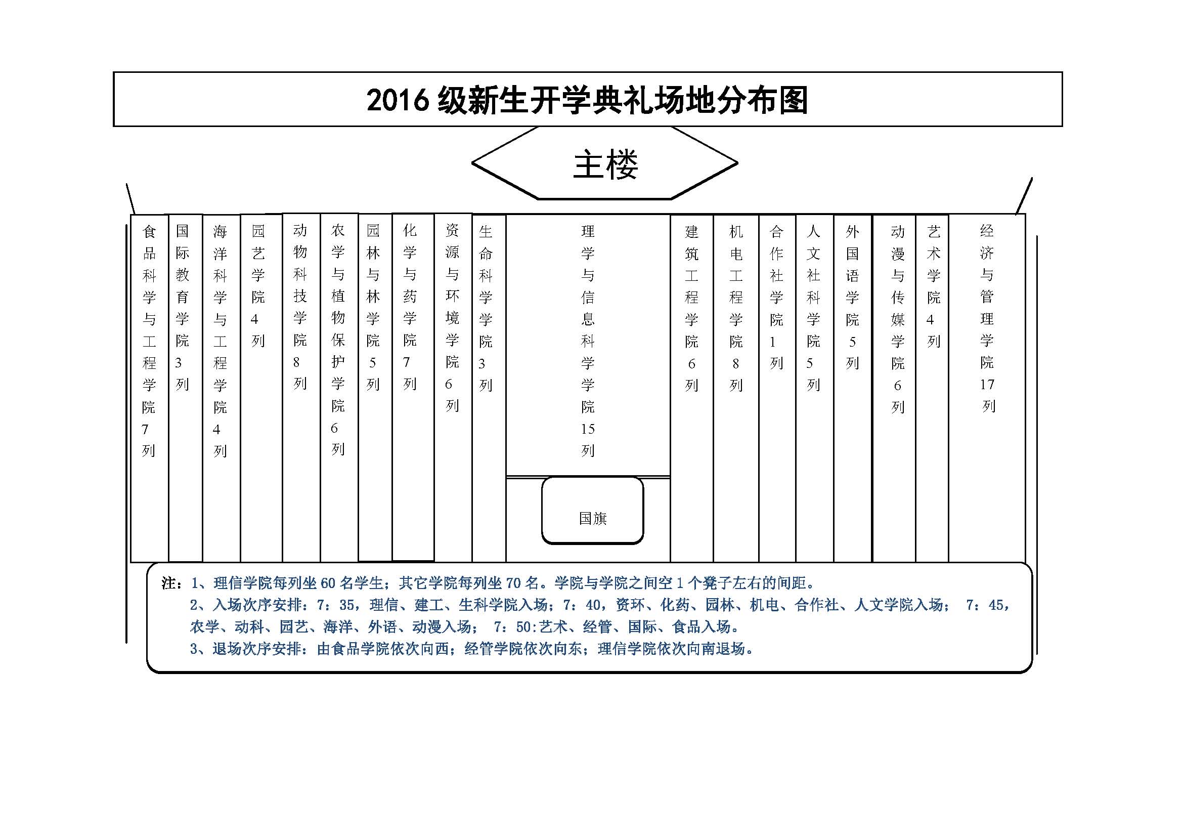 2016新生开学典礼场地安排表