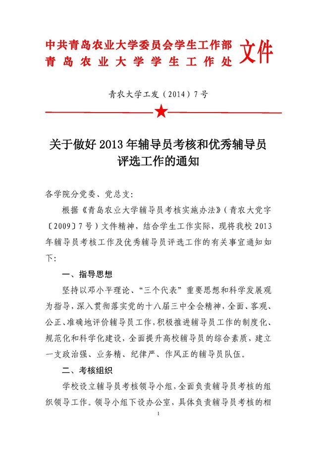 关于做好2013年辅导员考核和优秀辅导员评选工作的通知